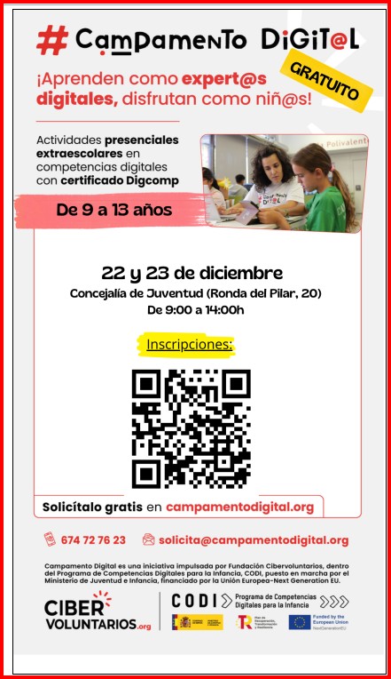 CAMPAMENTO DIGITAL. 22 y 23 de diciembre de 2025 en la sede de la Concejalía de Juventud de Badajoz.