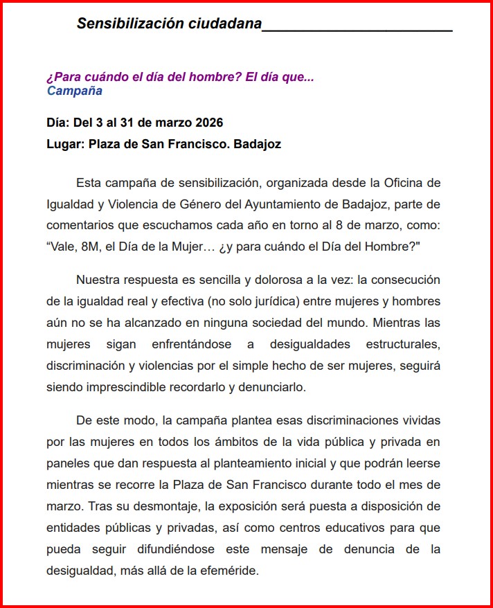 '¿Y para cuándo el día del hombre? expo que se realiza con el objetivo de desmontar comentarios que se escuchan cada año en torno al Día Internacional de la Mujer.