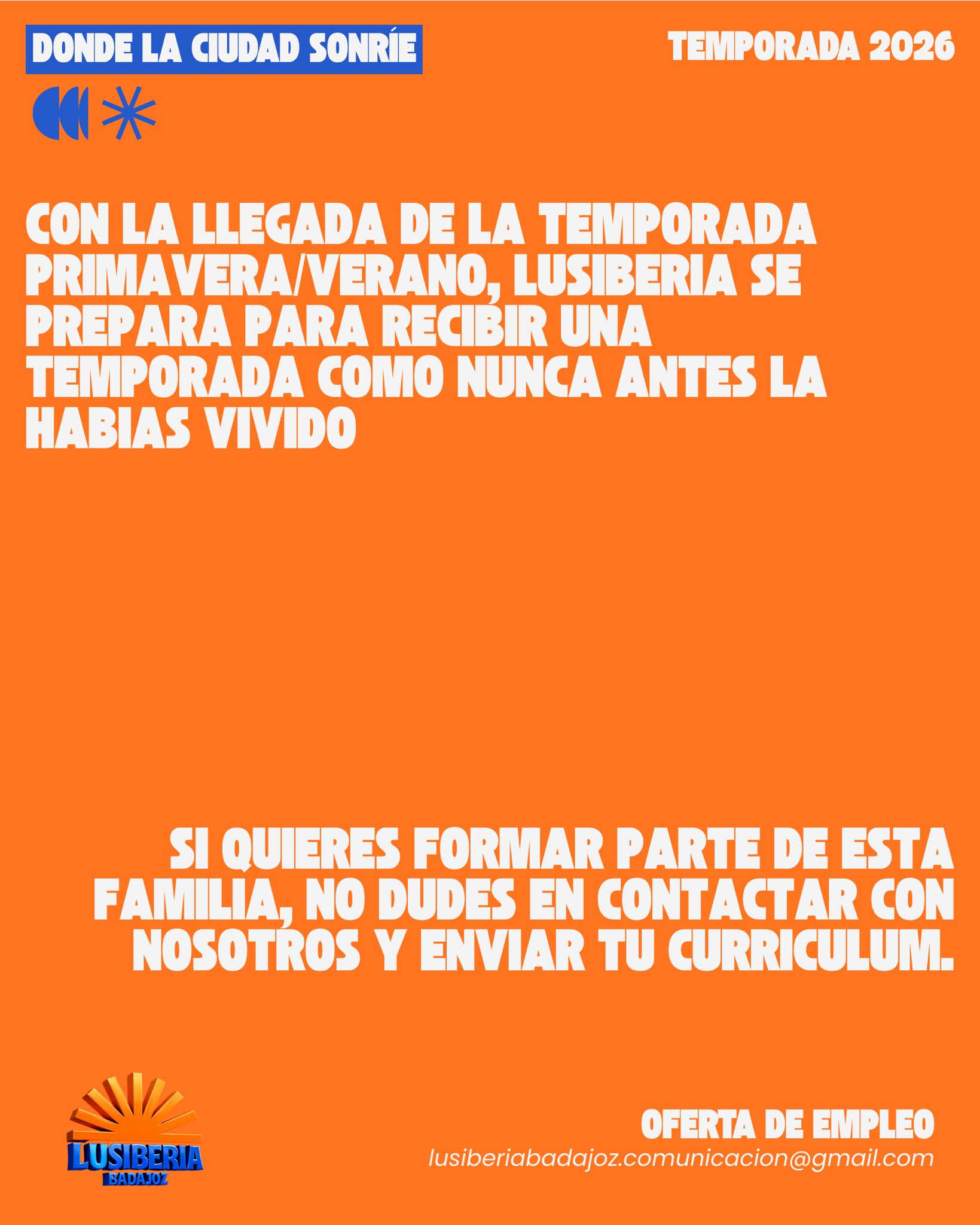 Únete a nuestro equipo, buscamos diferentes perfiles que puedan dar cabida a una temporada primavera/verano única