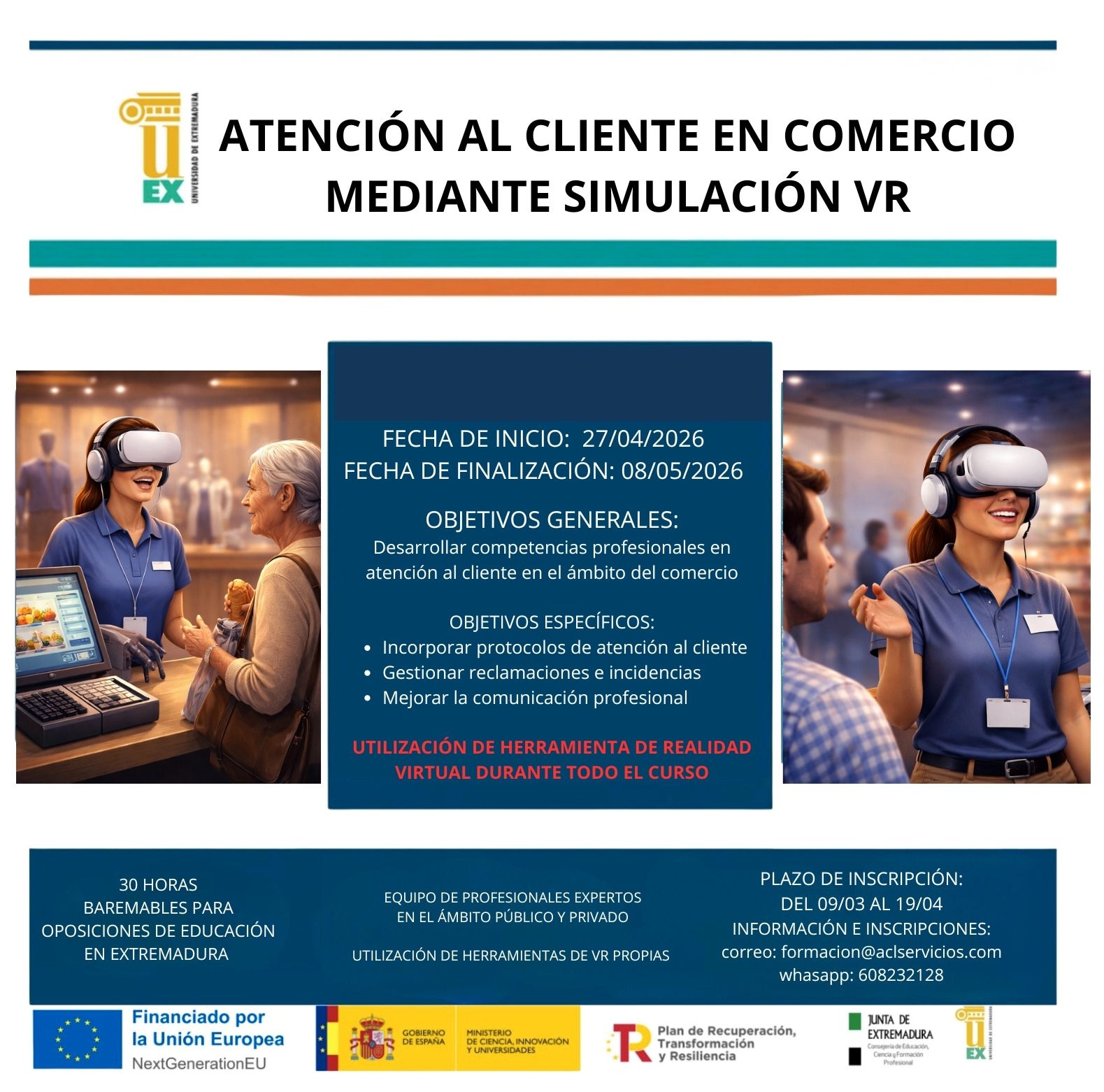 CURSO DE CURSO DE REALIDAD VIRTUAL‼️ ➡️ ATENCIÓN AL CLIENTE EN COMERCIO MEDIANTE SIMULACIÓN VR 🥽 Publicado el: 31/03/2026 13:29 - Cursos de Formación Leer más